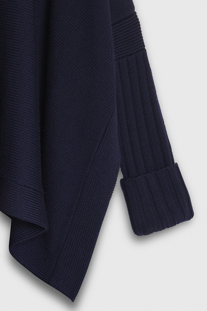 Alma Knitted Poncho Navy Merino