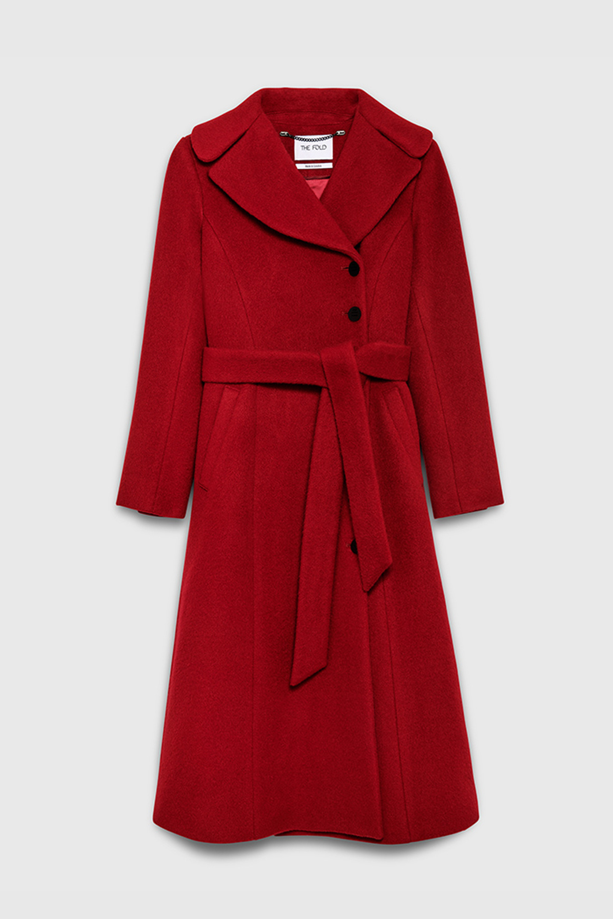 Asymmetric fastening elevates this classic design, finished with a deep wrap, statement lapels, and pockets. The fitted silhouette cinches in at the waist and flows out to a midi skirt – perfect for layering over dresses. Tailored from premium Italian wool, it’s luxuriously soft and cosy. Knot the self-tie belt or switch to the leather Portman; cold days have never looked so good.