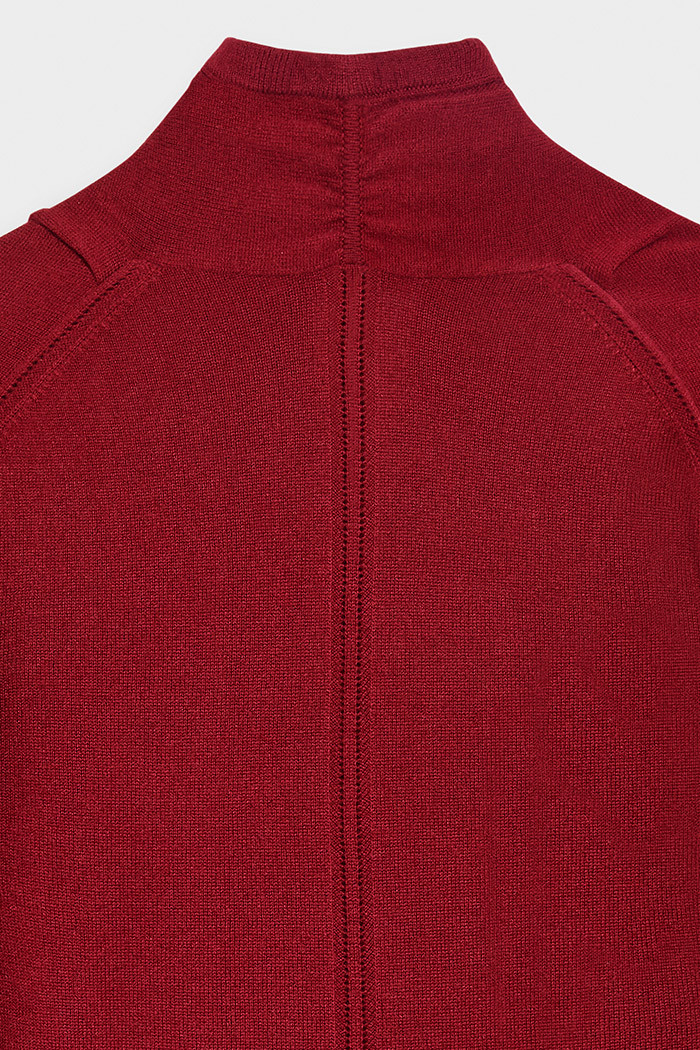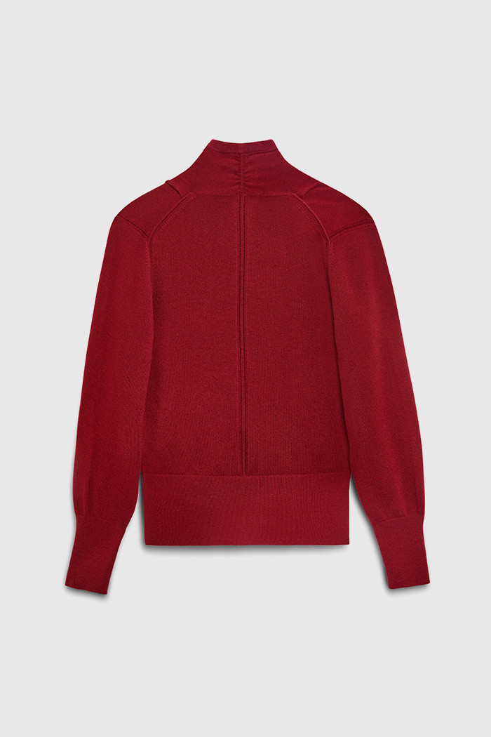 Cosy up in the exquisitely soft Howell wrap sweater, knitted from pure cashmere with a flattering deep ribbed hem and slight blouson sleeves. The deep red hue will add an energising splash of colour to any outfit. For an effortless look, style with denim skinny jeans and a pair of flats.