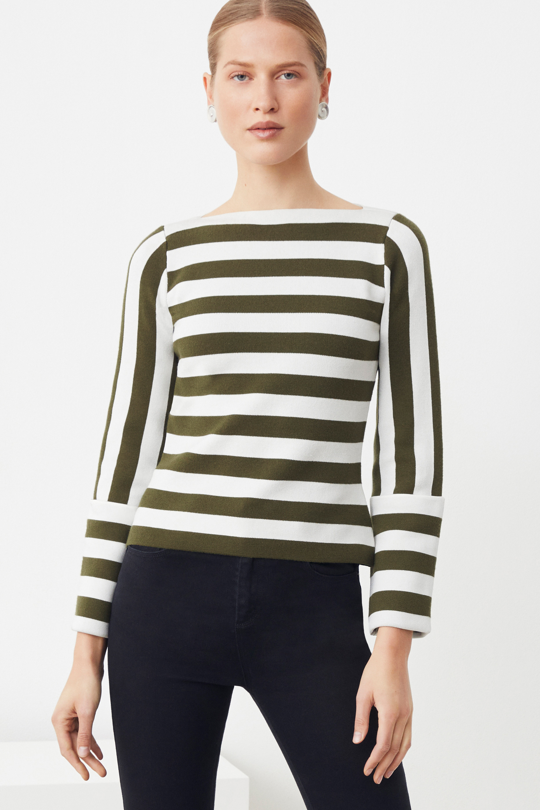 - Khaki stripe: The viscose filament in this yarn is made from RCS pre-consumer recycled viscose. Ivory stripe: Contains responsibly sourced non-mulesed merino wool.