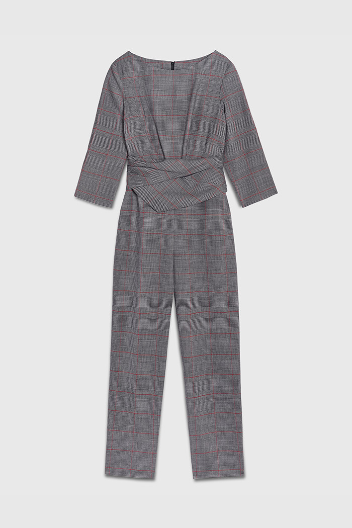 Lugano Jumpsuit Grey Check Stretch Wool