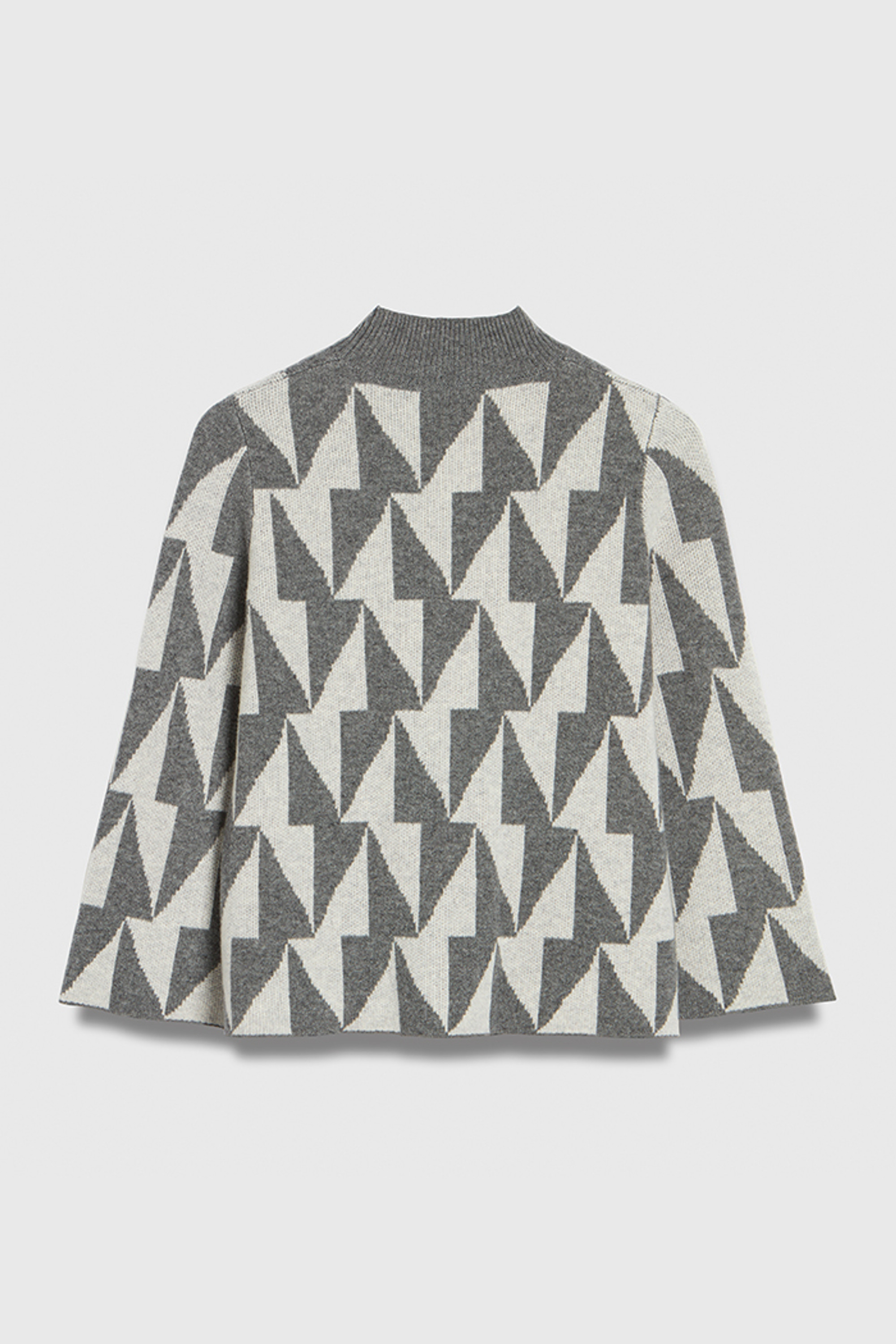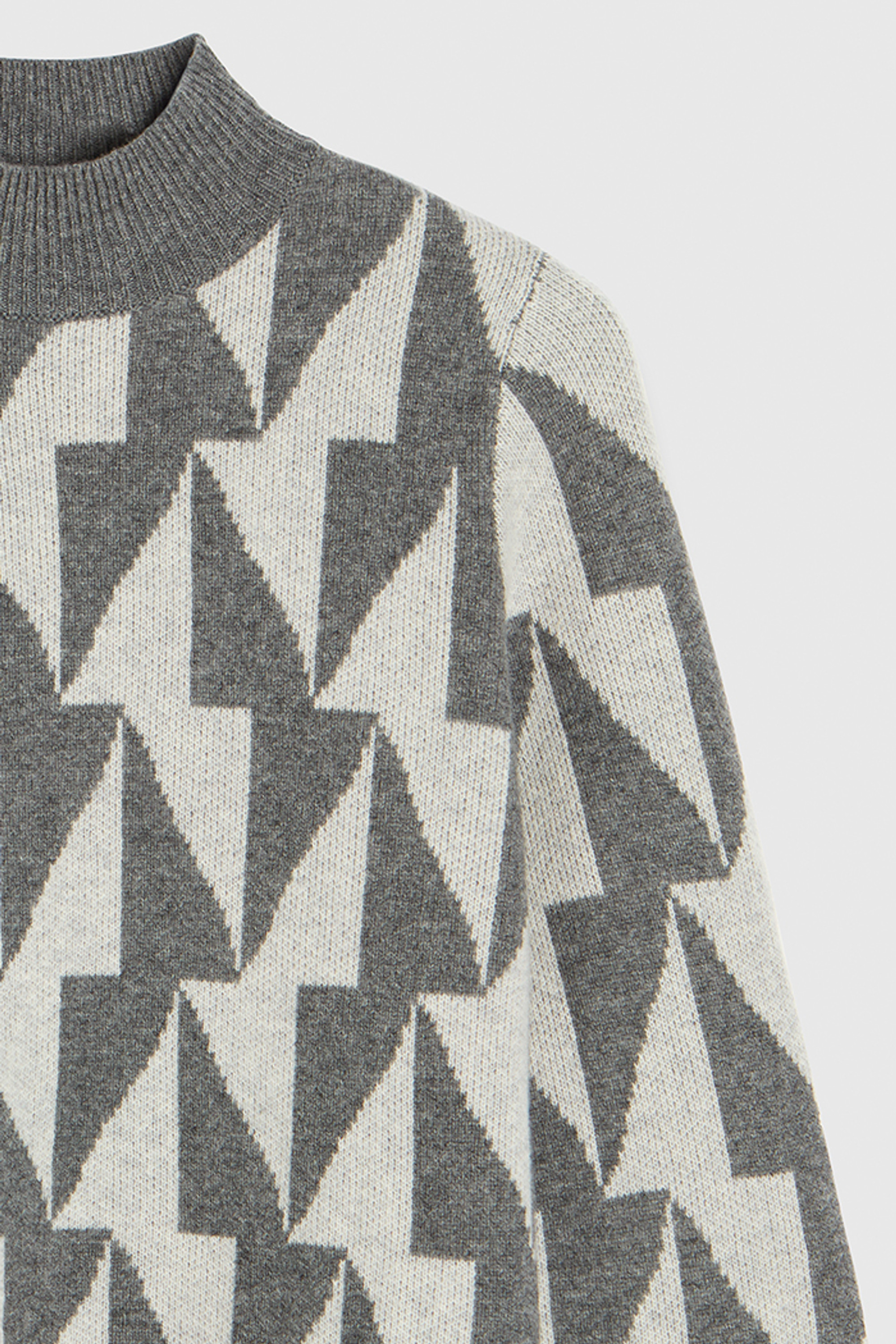 The Montella sweater is knitted from a sumptuous wool cashmere blend to a relaxed, cosy shape. A geometric pattern adorns the intarsia knit, marrying two shades of grey and creating a contemporary tonal effect. Finished with a ribbed mock neck and kimono bracelet-length sleeves, it's sure to keep the chill at bay throughout the coldest spells.