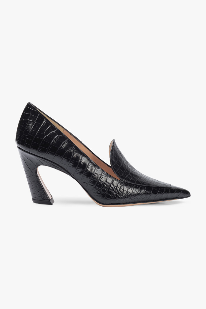 Our bestselling Ravello heel is back, made in Italy from semi-matt, croc-embossed leather. The slipper-cut silhouette sits on a curved 80mm heel for a chic yet manageable lift. Foam padding beneath the ball of the foot and a gel insert at the heel have been added for extra comfort. Designed in black, these exquisite heels are a stylish finishing touch that'll complement any outfit.