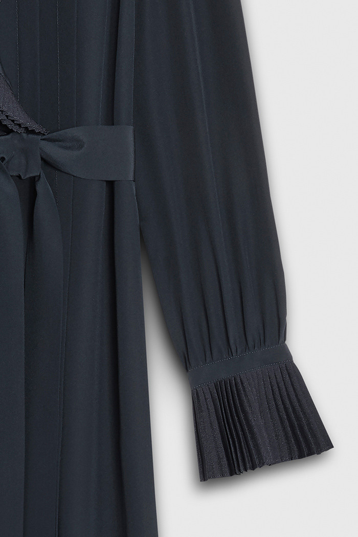 Our iconic Symons blouse now comes in dress form, ideal for all-in-one outfitting come autumn. A fit and flare shirt dress silhouette, it strikes the perfect balance between laidback and put-together. Classic yet contemporary, it falls to a wearable midi length with lining through the body. Flowing from the shoulder to the hem, delicate pintucks detail the sumptuous silk crepe de chine, while pockets ensure full practicality. Elegant plissé trims adorn the neckline, shoulders and deep cuffs, ensuring the most lavish of finishes. Accessorise with a leather belt and heels for a sophisticated ensemble that makes your 9–9 feel that much more special.